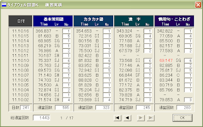残念ながらローマ字入力の頃にはそんなにまじめにタイプウェルをやっていなくてその頃の記録が残っていません。